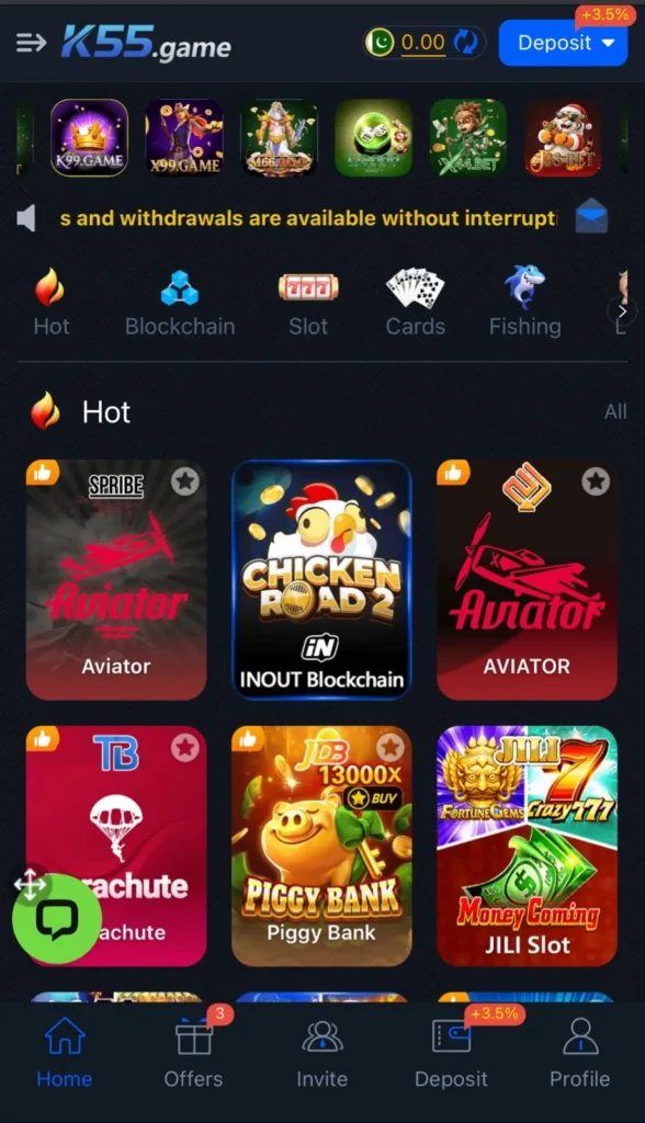 The k55 Game grows fast because it matches what Pakistani players like. First, it works smoothly on normal smartphones. Second, it does not confuse users with complex menus. Third, it offers both slots and card games in one place.